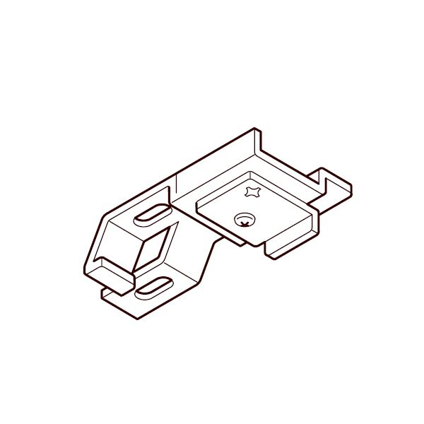 Takbeslag til bruk med New Delac motorisert skinne og Powerful motor, der ledningene føres gjennom takbeslaget, samt festes videre med ledningsklips i overkant av skinnen.