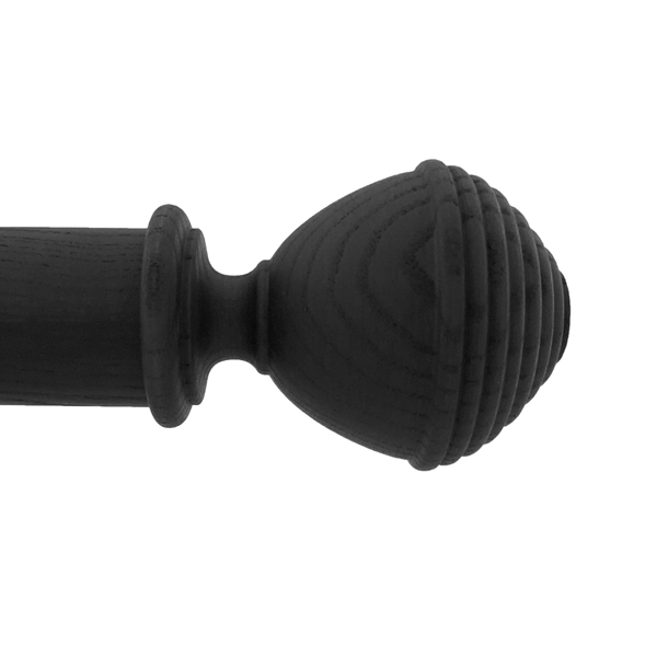 Half Ribbed endedekor har form som en ball med riller på ytterste halvdel, og benyttes til trestang med diameter Ø 45 mm.