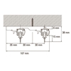 Dobbelt takbeslag i hvit, til bruk med to Nexty skinner, eller med en kombinasjon av en Legato skinne foran og en Nexty skinne bak, med avstand 60 mm mellom skinnene.